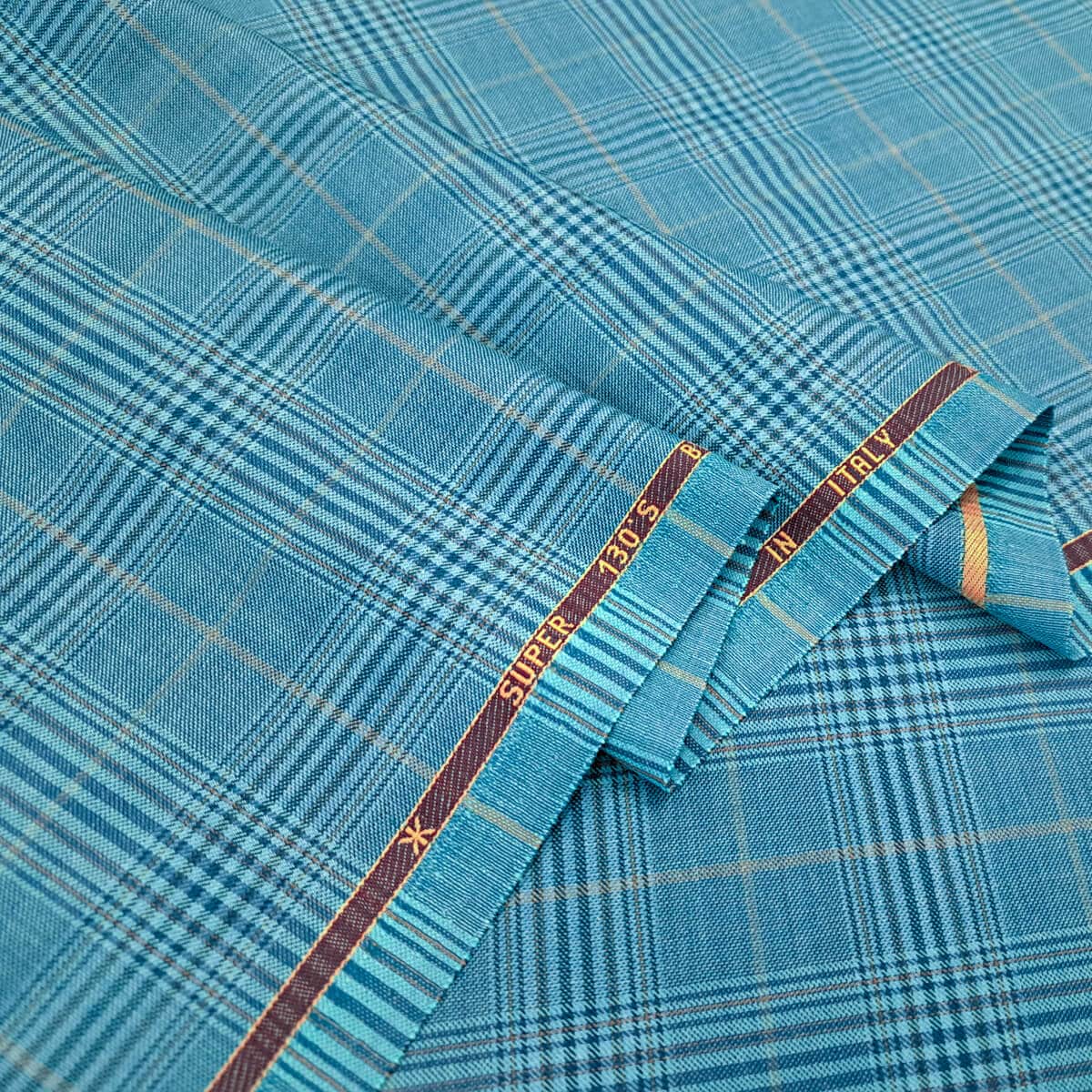 Wełna w kratę garniturowa SUPER 130S niebieska